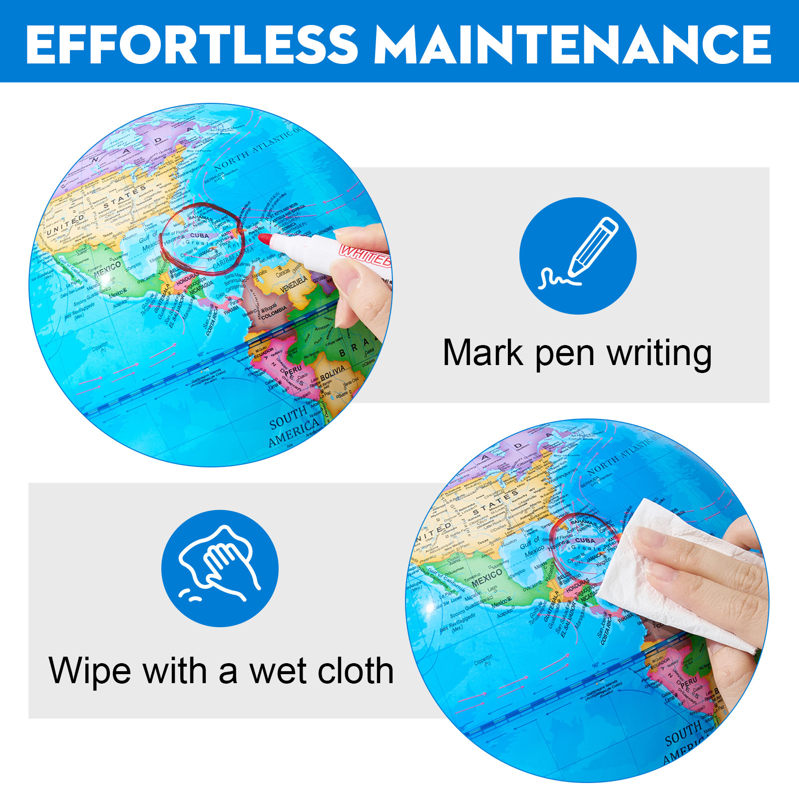 【Writable Globes Surface】Featuring an HD Waterproof Film, GOCHANGE globes for kids offers you and your children the opportunity to mark or highlight country capitals, significant cities, and more directly on its surface for easy memory. Effortlessly clean the markings with a damp cloth, ensuring easy removal without concerns about lasting stains.
