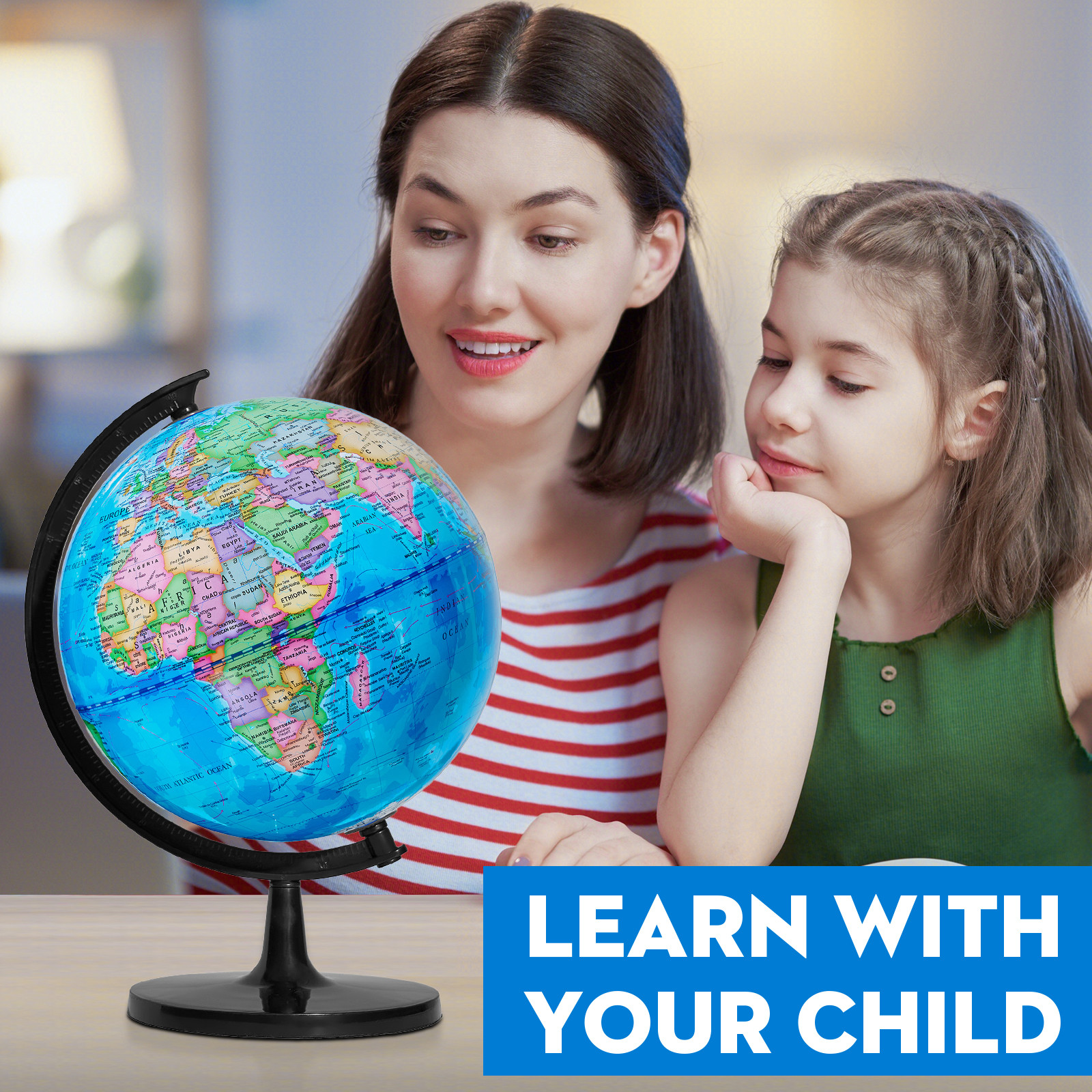 【Accurate World Globe】Size of 12 inch, this world globe is the suitable size for children & student to easily handle and explore. The globe accurately represent the geography of the world, including the locations of seas, oceans, islands, different countries (the capitals, major cities, major river, desert of country), warm current and cold current also.
