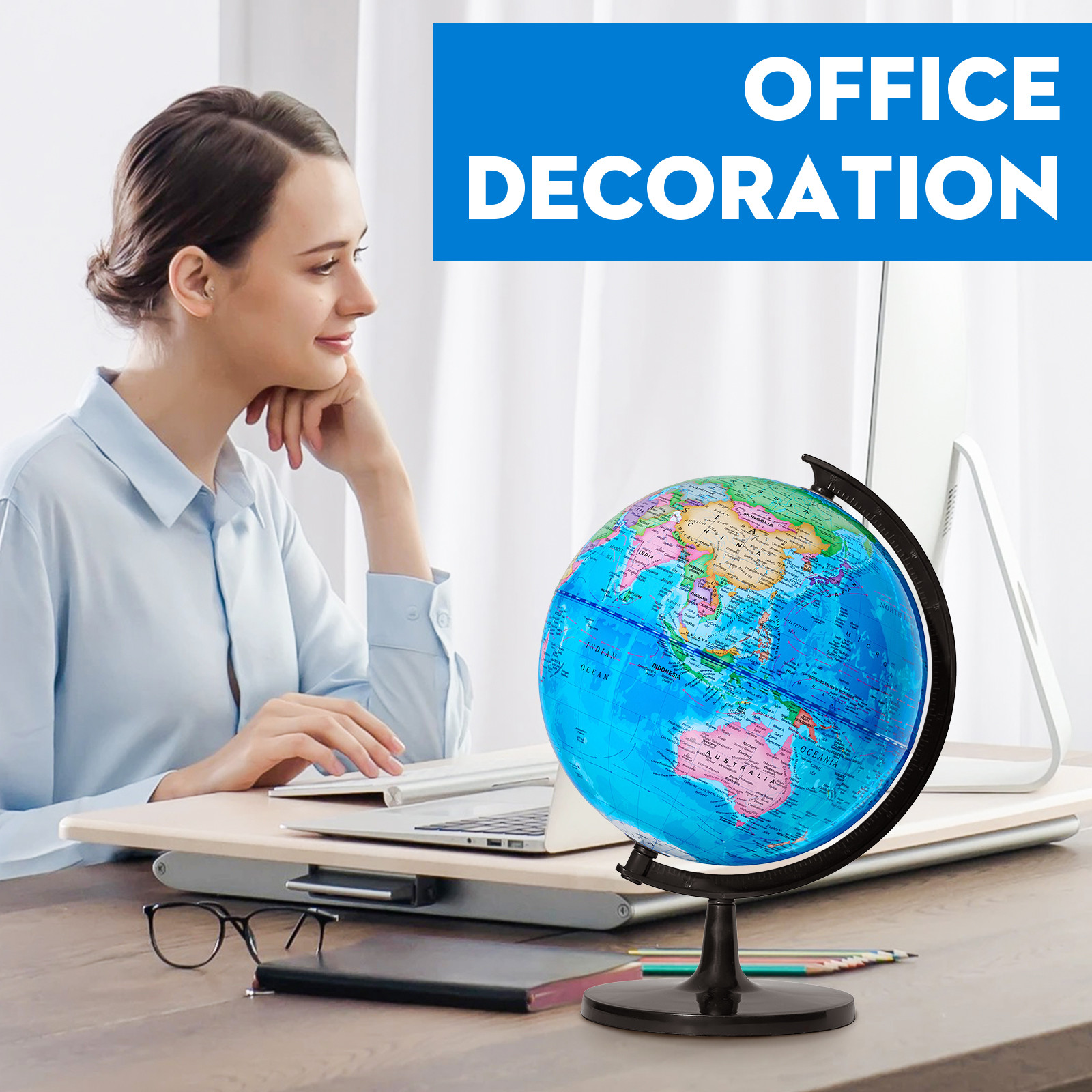 【Funny Educational Tool & Decoration】The detailed and intricate design of this desktop world globe is not just an educational learning, it is also can be gifted or added to any classroom or office decor or homeschool supplies.