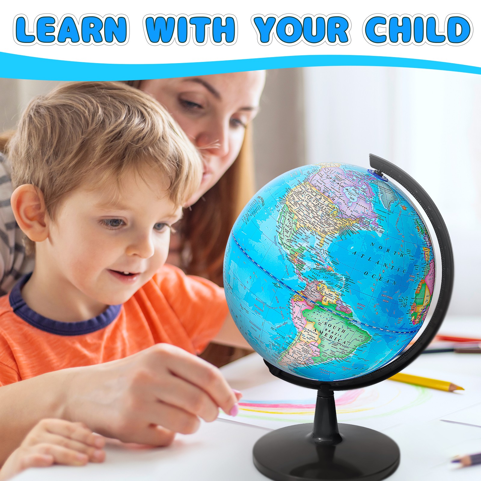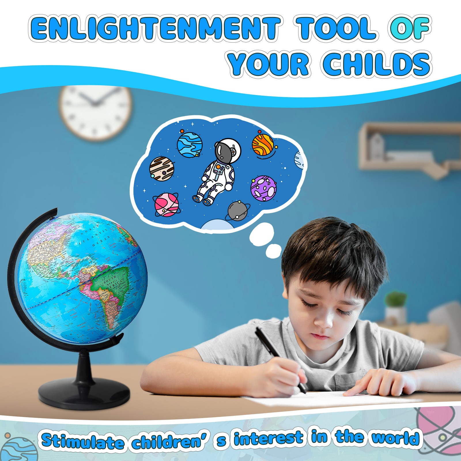 【Funny Educational Tool & Decoration】The detailed and intricate design of this desktop world globe is not just an educational learning, it is also can be gifted or added to any classroom or office decor or homeschool supplies.