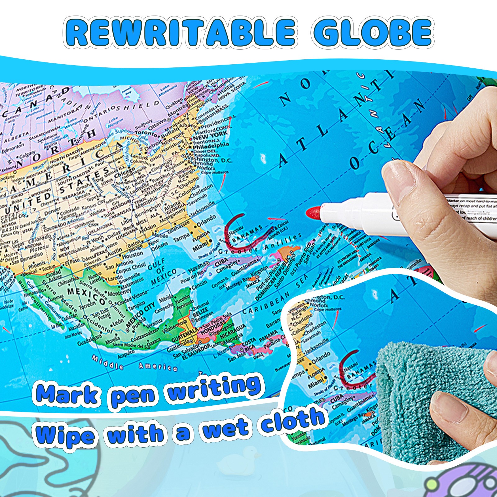 【Writable Globes Surface】Featuring an HD Waterproof Film, GOCHANGE 8in globes offers you and your children the opportunity to mark or highlight country capitals, significant cities, and more directly on its surface for easy memory. Effortlessly clean the markings with a damp cloth, ensuring easy removal without concerns about lasting stains.